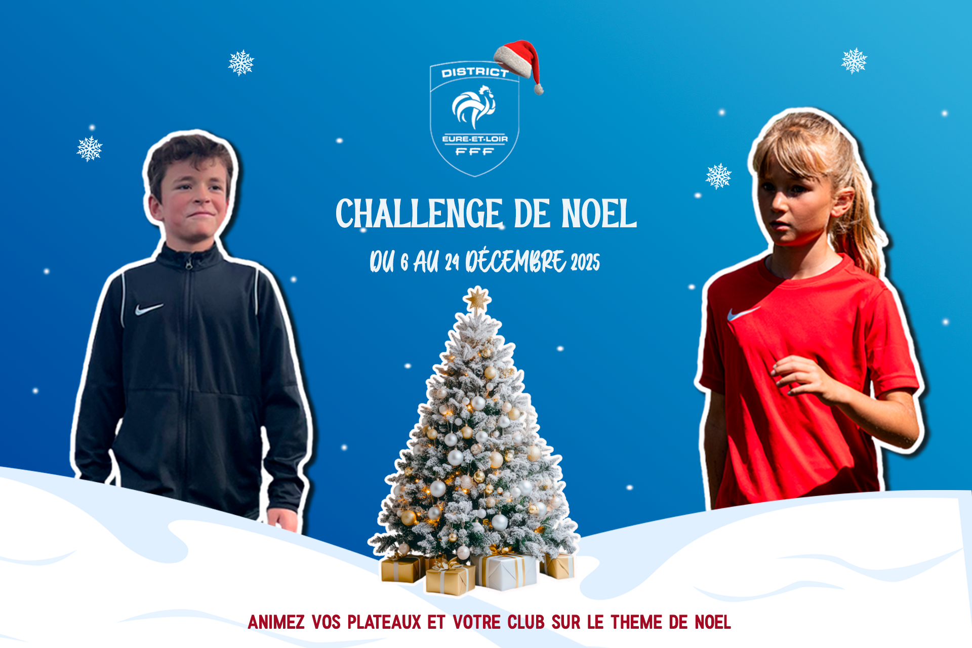 Cette année le District vous invite à participer au Challenge de Noel ! Deux possibilités de participer : CHALLENGE PLATEAU U7/U9 Organisez vos plateaux entre les 6 et 24 décembre...
