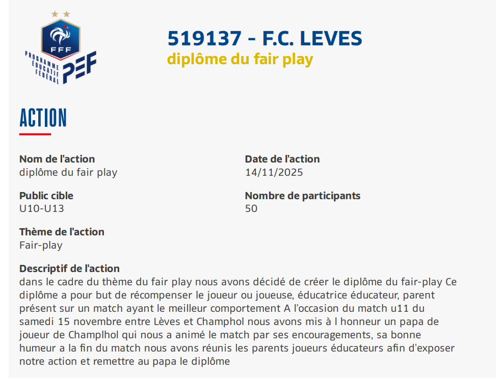 Pour tout renseignement concernant le Programme Educatif Fédéral, veuillez contacter Thomas PARMENTIER au 06.64.44.04.90 ou par mail: tparmentier@eure-et-loir.fff.fr