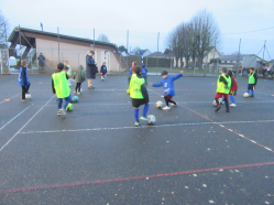 Lors d’un entraînement des U7 et U9, Mathéo Labbé, en service civique au club, a proposé une activité ludique autour du tri des déchets. À partir d’images représentant différents déchets, les enfants devaient identifier leur catégorie puis conduire leur ballon vers la « poubelle » correspondante (matérialisée par un angle du terrain). Un point était attribué lorsqu’un joueur arrivait en dernier dans la bonne zone ou s’il se trompait de catégorie. L’équipe gagnante était celle totalisant le moins de points.